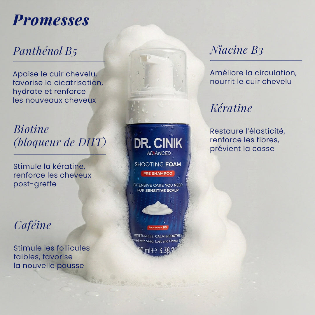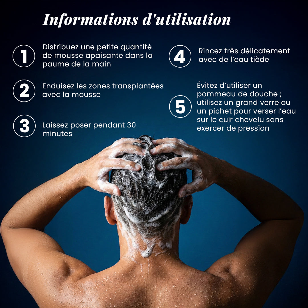Peut être utilisée en toute sécurité avant et après des procédures de greffe de cheveux pour un soin du cuir chevelu doux et soutenant.