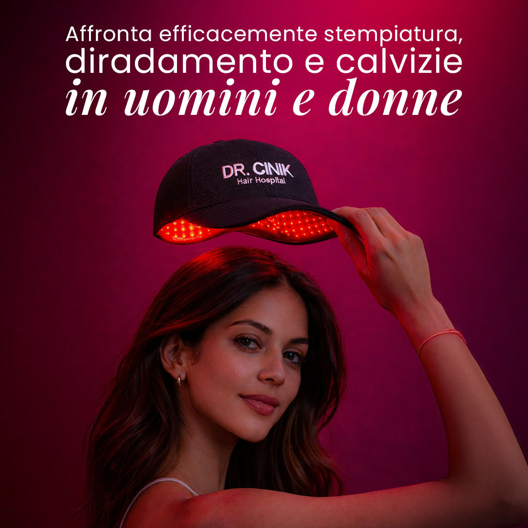CINIK Laser Hair Regrowth Cap utilizza la Low-Level Laser Therapy (LLLT), una tecnologia non invasiva approvata dalla FDA, progettata per stimolare la crescita dei capelli sia negli uomini che nelle donne.